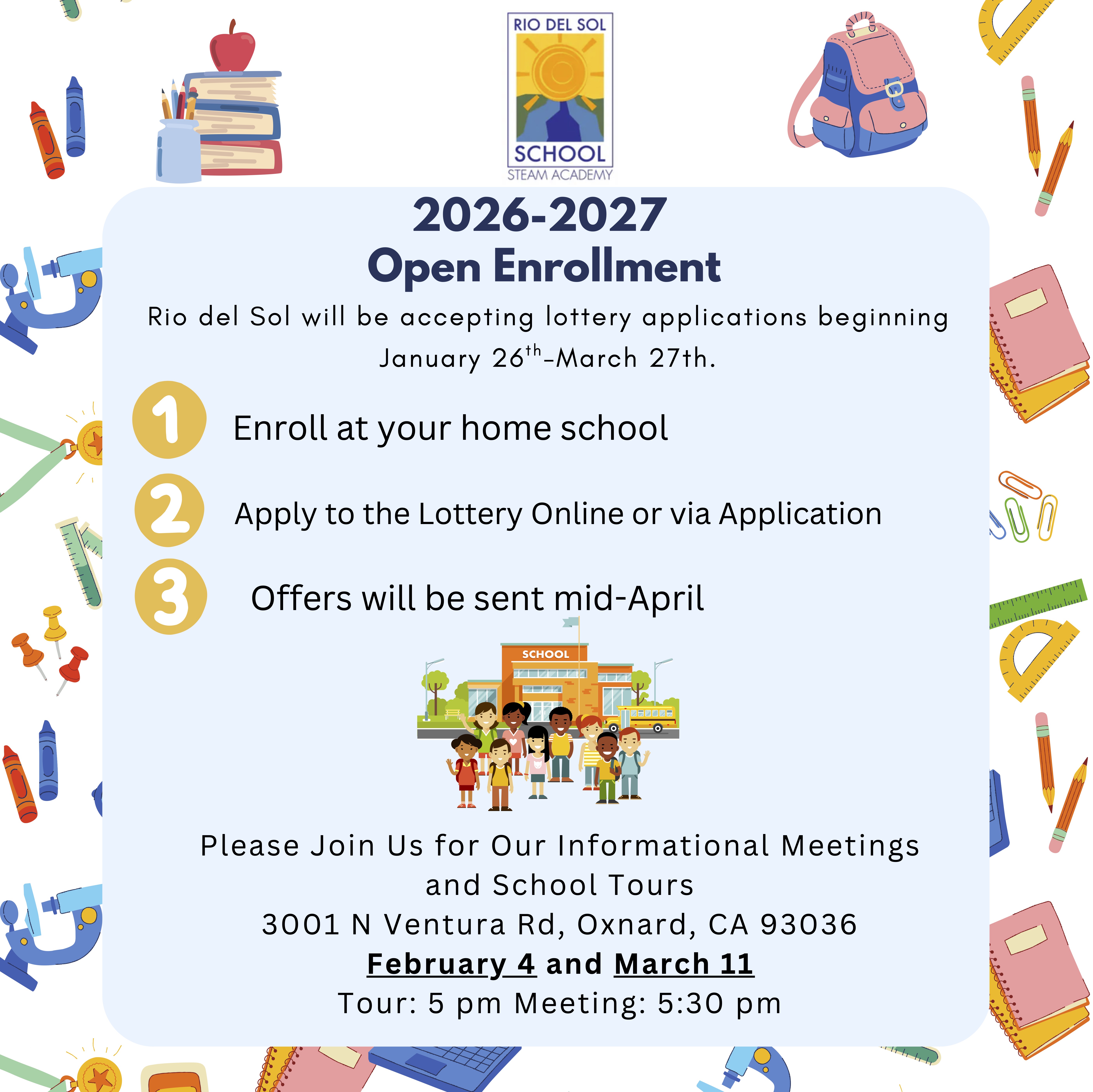 Rio Del Sol School Open Enrollment January 26th - March 27th.Informational Meetings and School Tours February 4th and March 11th