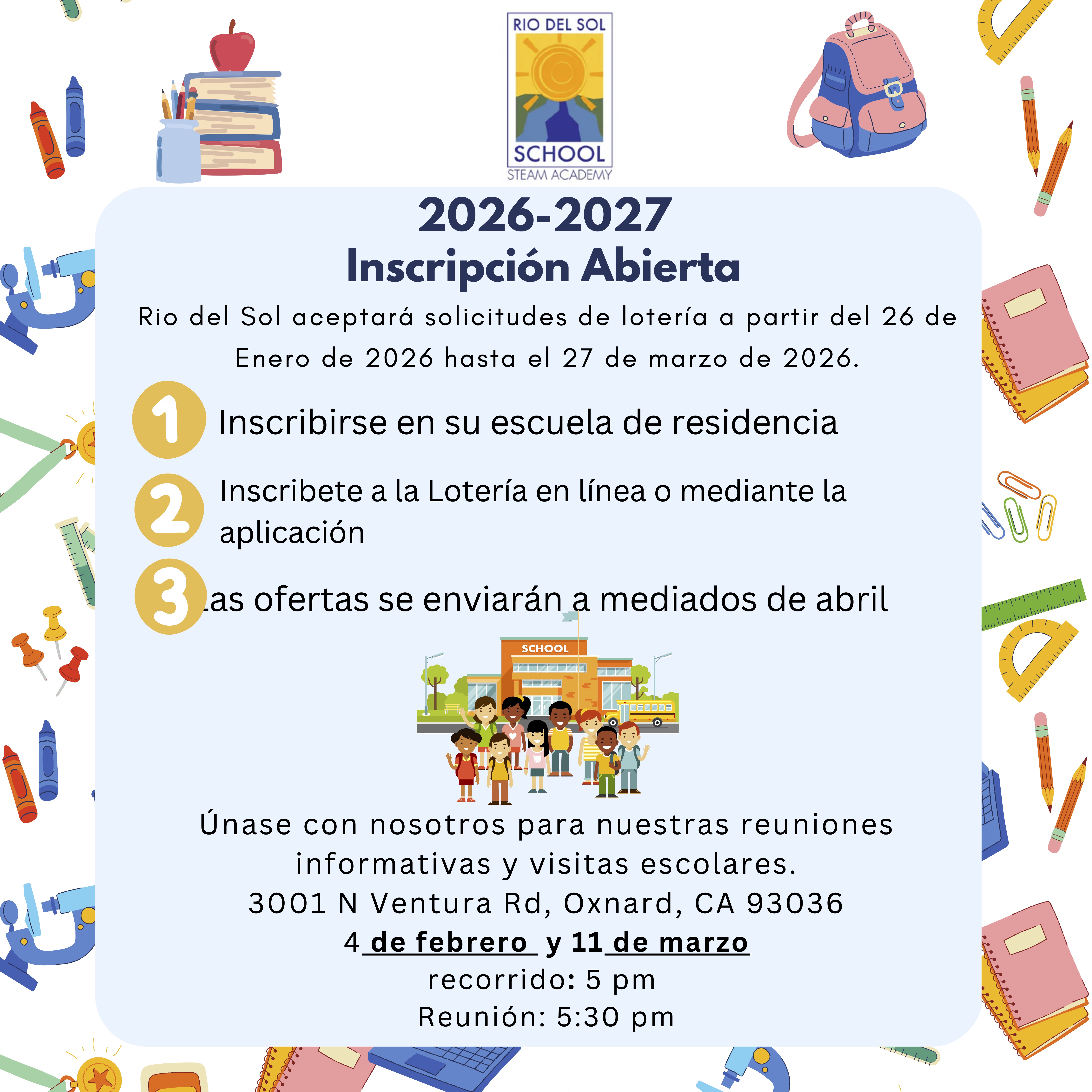 Rio Del Sol School Open Enrollment January 26th - March 27th.